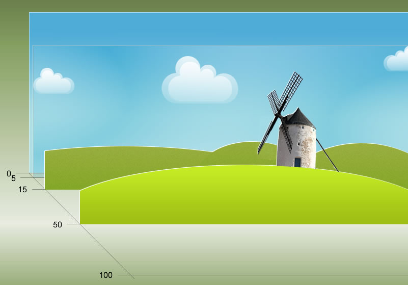 Moving background elements at relative speeds